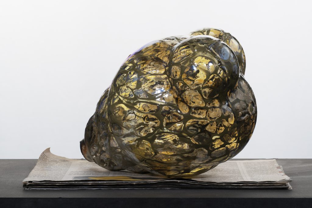 “I work with the idea of metamorphosis, decay, memory and transformation. In my creative process I explore the idea of the other-ness, the ephemeral existence of humanity in relation to its transient environment and the historicity and materiality relevant to the current socio-anthropological entanglements. I mould, compose and construct sculptural volumes by hand blowing glass, welding metal and bronze, ‘accumulating’ found and re-purposed materials. I start from sketches of ideas to then translate atavistic forms and merging those from their tactile dimension to their volume/s, to eventually construct a landscape where the shapes and the forms subsume the space/s they are meant to expand towards or against.